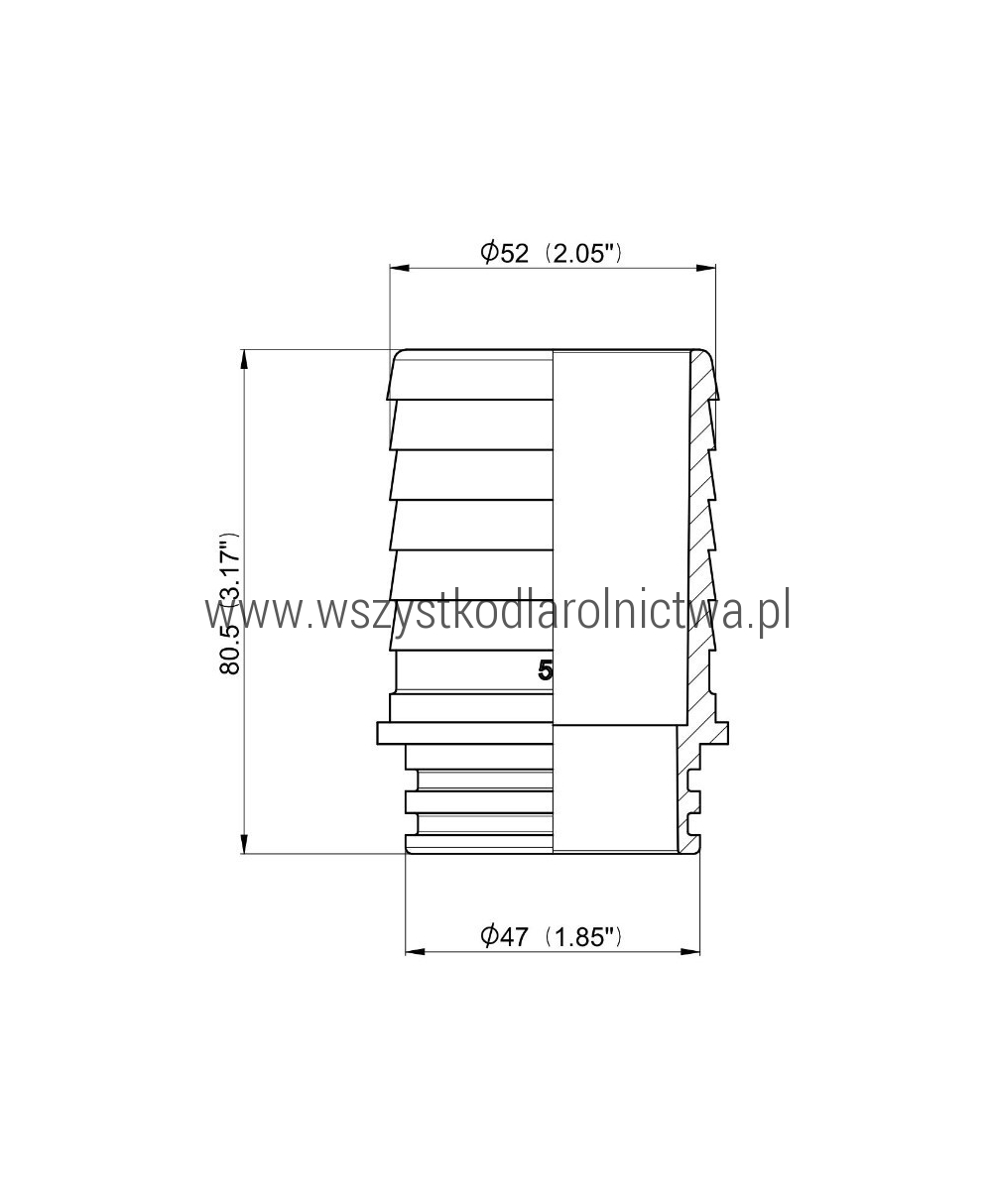 • 106752 Przyłącze węża zaokrąglone 2'' na wąż 52 mm