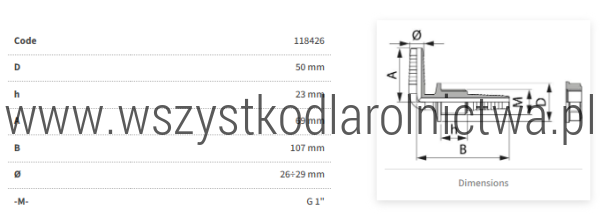 118426 Złączka ścienna, zbiornika 1", 90° z nakrętką na wąż 26-29 mm ARAG