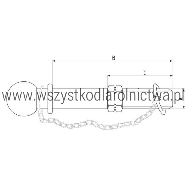 • Z992519KR Sworzeń kulowy przykręcany, K50 25.4 x 190 mm