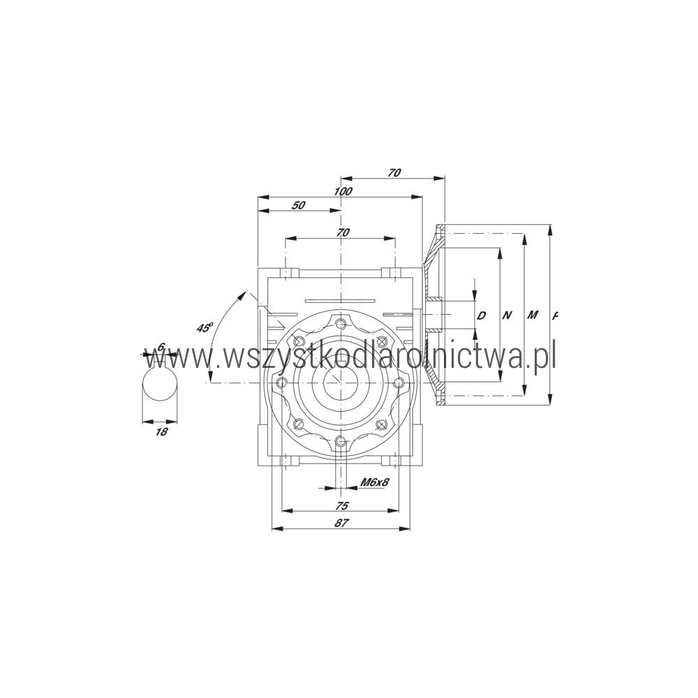 • Wał drążony: Ø18 mm (H7) klin 6 mm