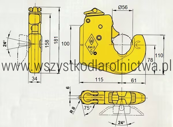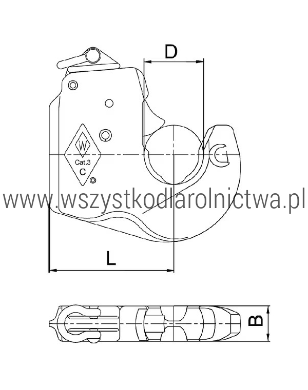 1208553 Hak sprzęgający dźwigni dolnej typ C1 kat.2 Walterscheid