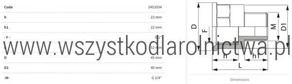 h1Długość gwintu złącza nr 2