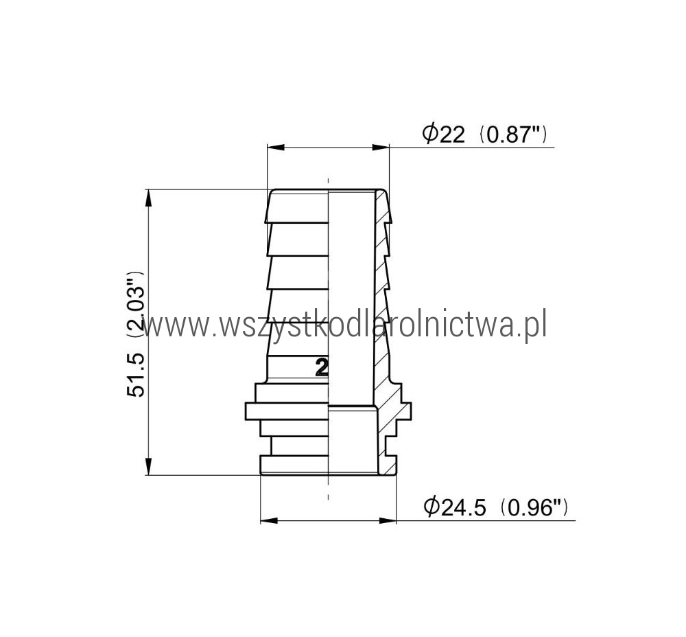• 106422 Przyłącze węża proste pod nakrętke nasadową z pierścieniem uszczelniającym Arag, 1" na wąż 22 mm