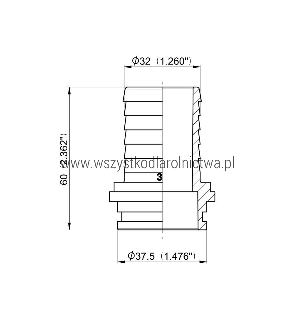 • 106633 Przyłącze węża proste pod nakrętke nasadową z pierścieniem uszczelniającym Arag, 1,1/2" na wąż 32 mm