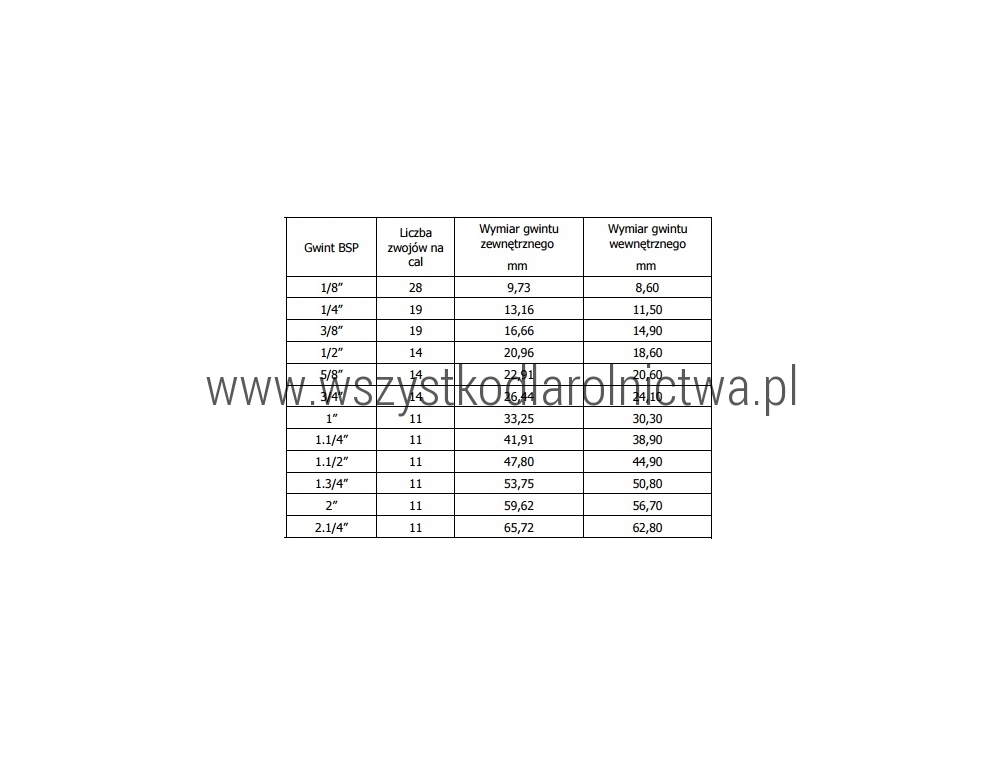 FŚrednica gwintu złącza