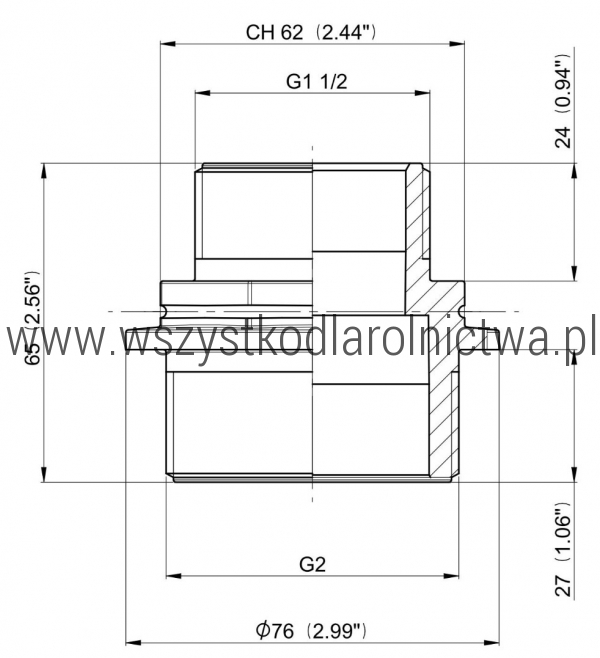 FŚrednica gwintu złącza nr 2