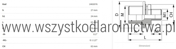 h1Długość gwintu złącza nr 1
