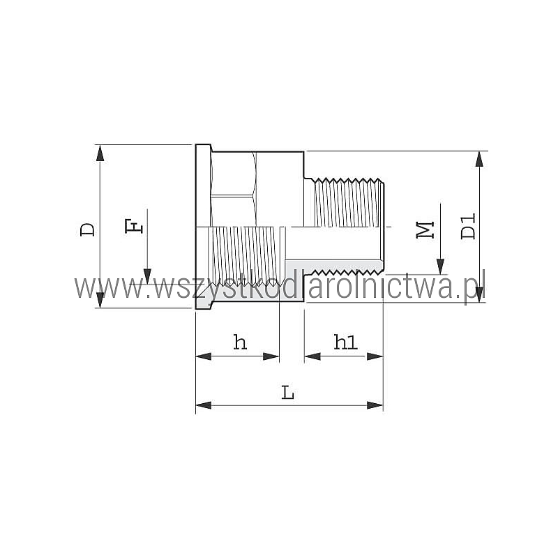 h1Długość gwintu złącza nr 2
