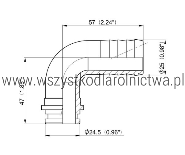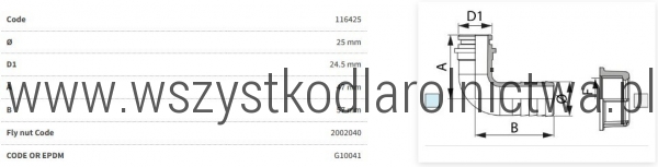 116425 Przyłącze węża 90°  pod nakrętkę 1" na wąż 25mm